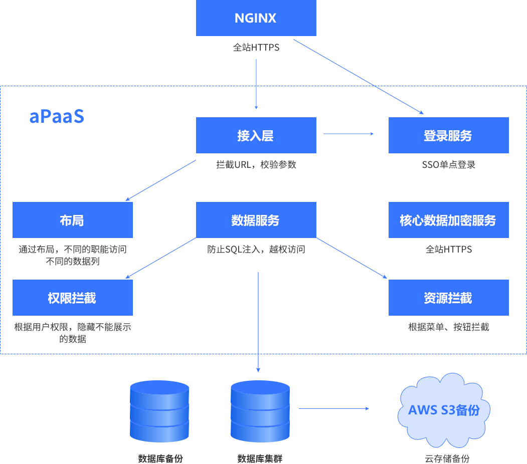 备注:::平台与业务分离,,,,开发运维只运维平台,,,业务专家生成的元数据(表/字段/运行逻辑)+业务数据全部以碎片的方式存储在DB中,,,,技术人员无法解读,,,只有业务专家授权后才能导出元数据+业务数据
