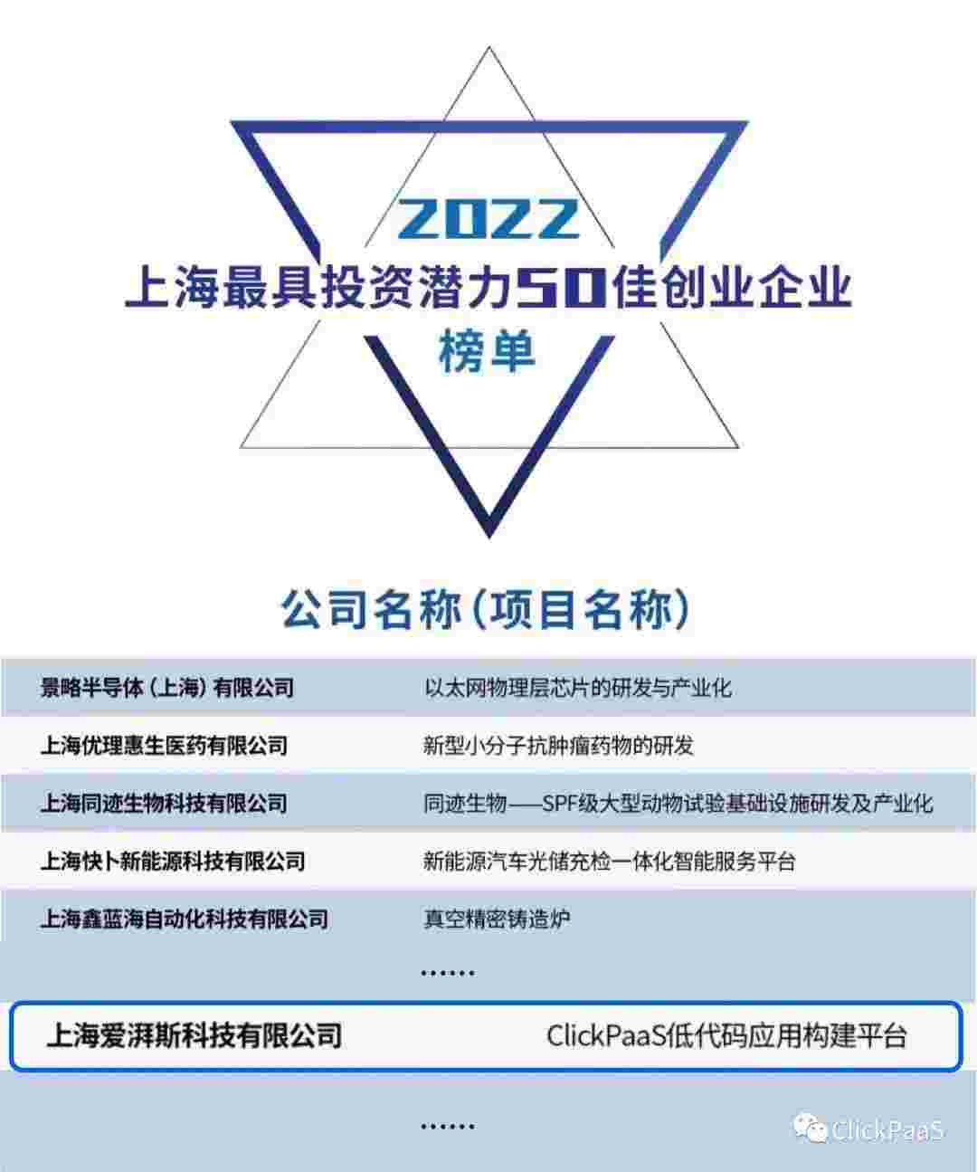 华为钱包 作为国内低代码PaaS平台的领军企业,,,,与120家创企入围角逐。。。期间接受了来自德同资本、、、、领中资本等知名投资机构的10位投资人组成专家评委团的背靠背盲选。。。。并最终入围“2022上海最具投资潜力50佳创业企业”榜单,,,被列入“上海市重点培育创业企业库”。。。