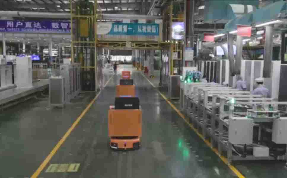 为车载冰箱物流配送打造的智能解决方案,,,,包含产中物流通过潜伏举升AMR搬运至线边,,产后成品物流智能仓储,,,流程包含产中物流智能齐套入库,,线边安灯叫料AMR智能配送至线边,,成品入库、、出库,,,通过无人堆高车机器人,,,智能仓储管理替代人工作业管理,,,实现更高存储、、、、更高效率、、、更具柔性化的解决方案。。。